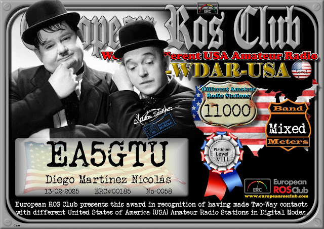 Diploma obtenido por contactar con 11.000 radioaficionados diferentes de Estados Unidos de América.